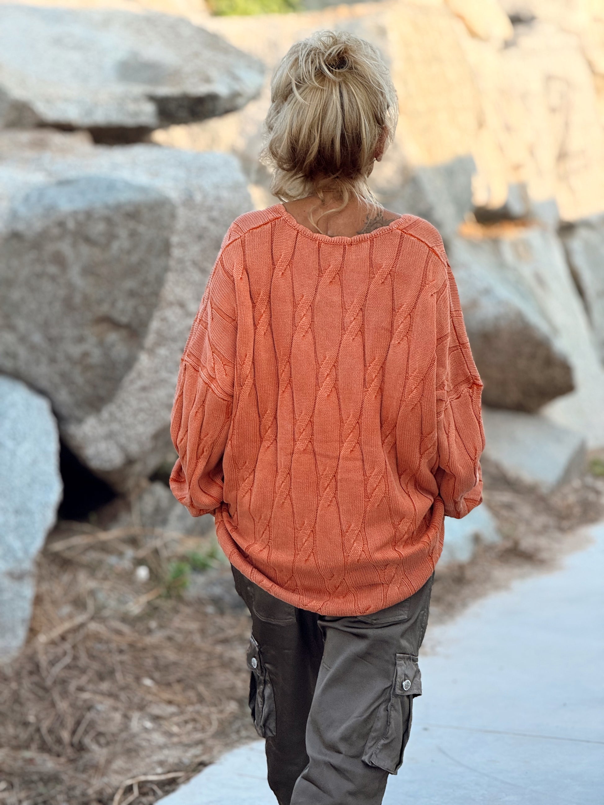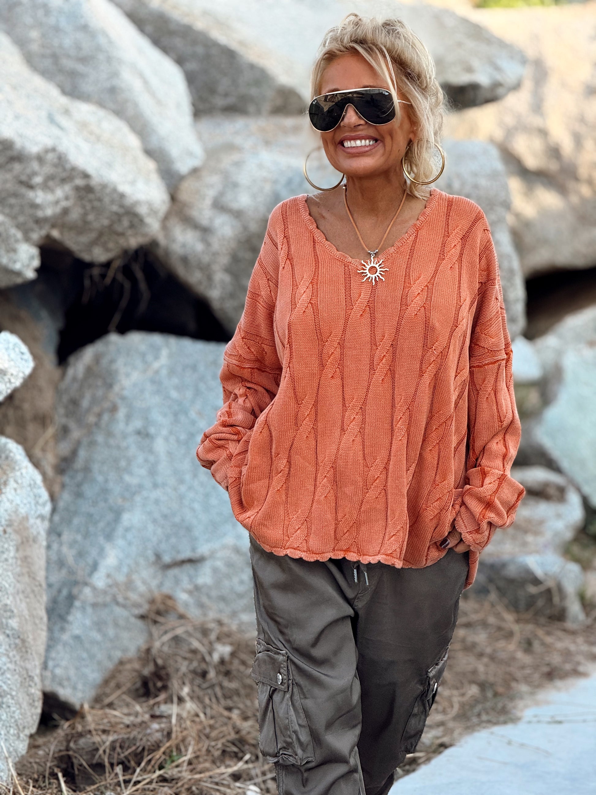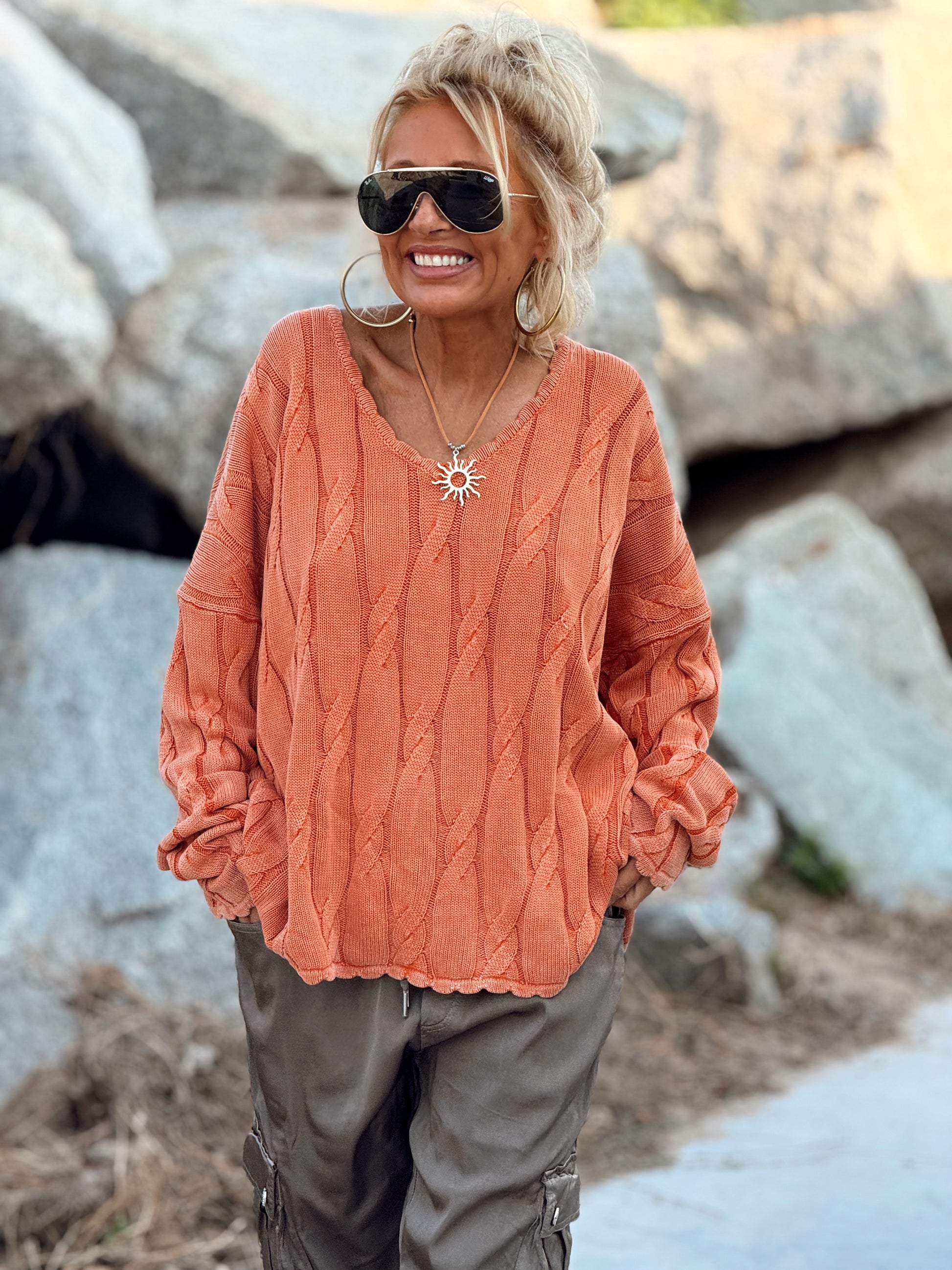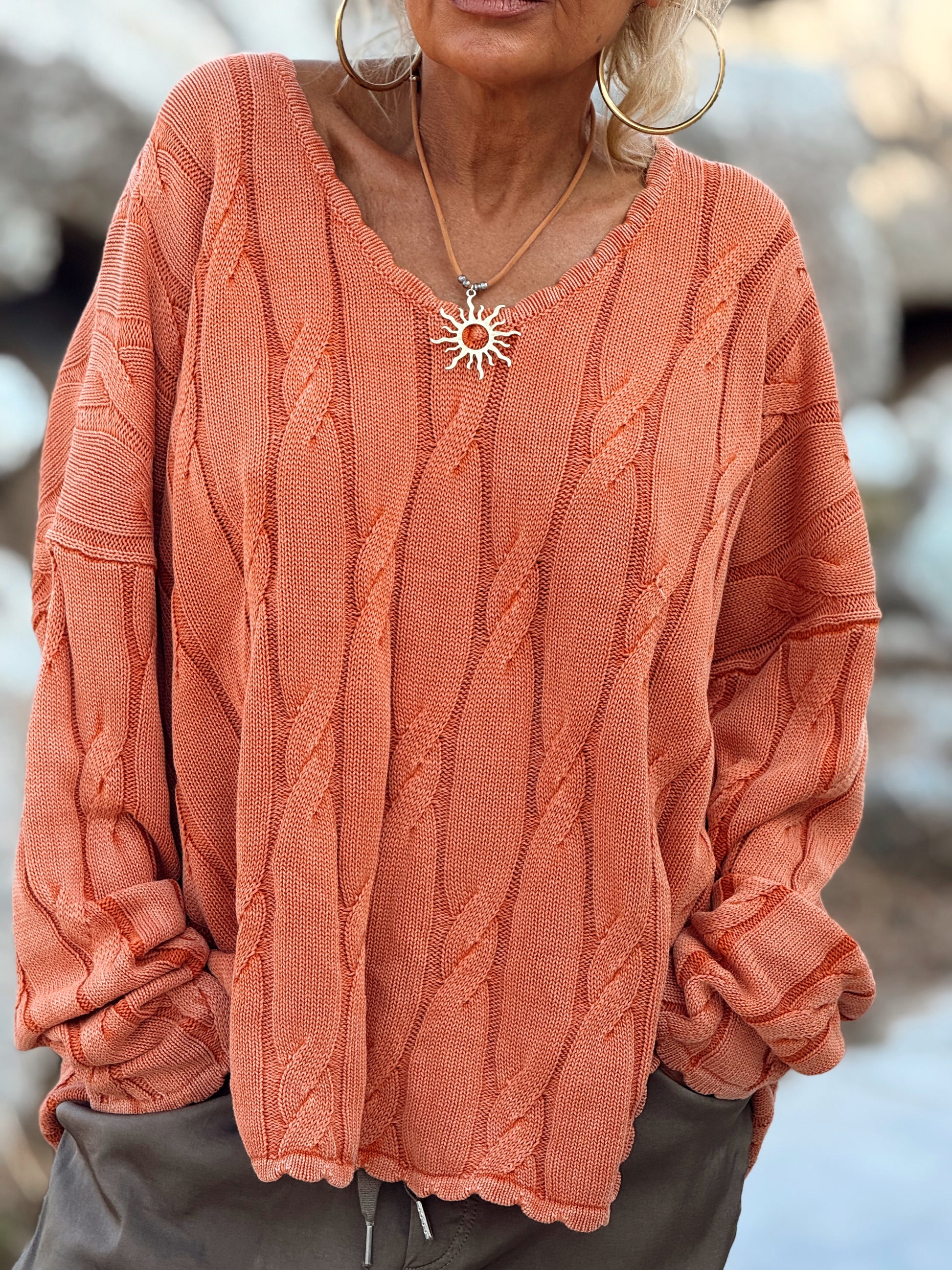 Un suéter trenzado con cuello en V, suave, cómodo y lleno de encanto. 🌸