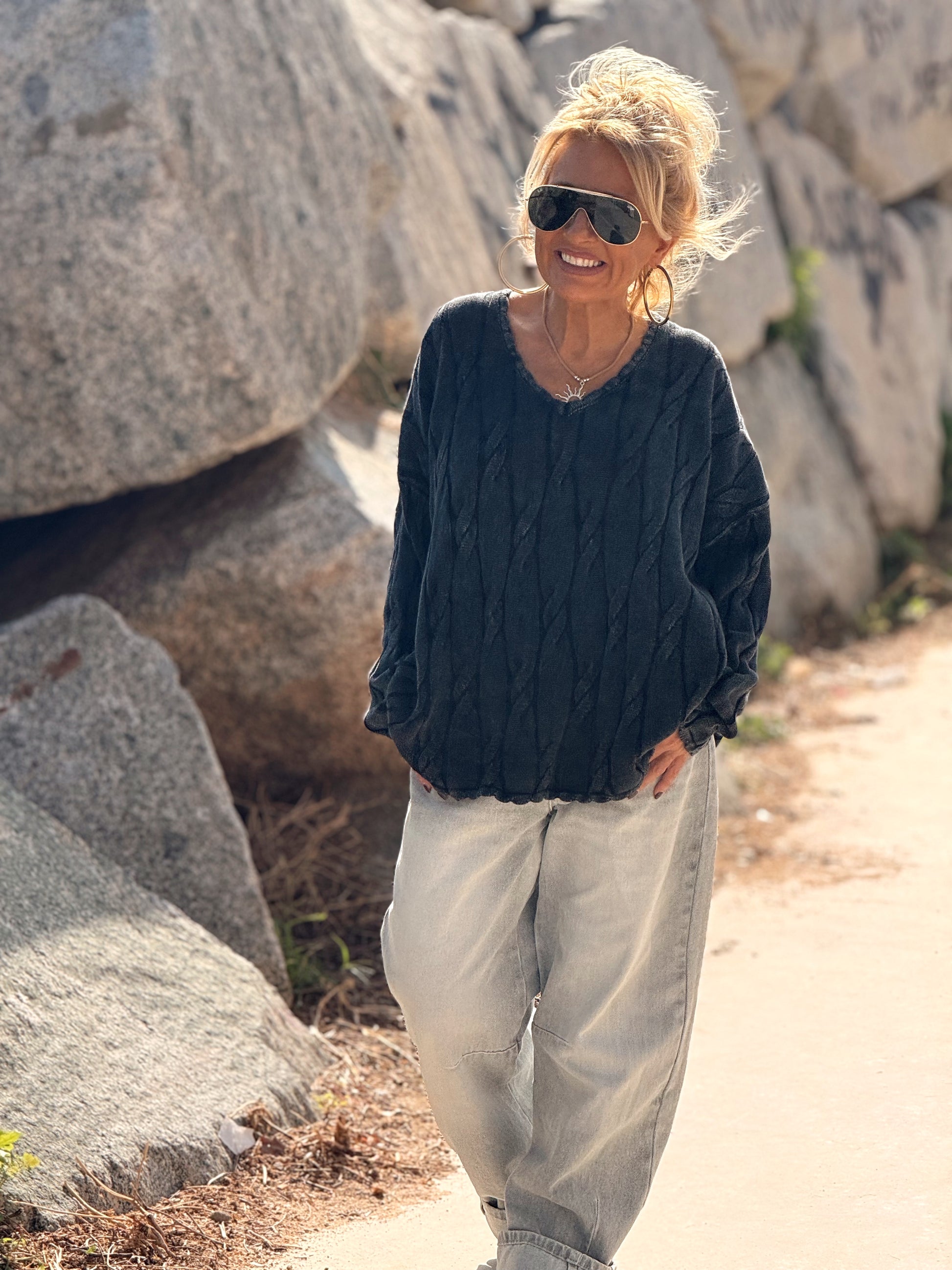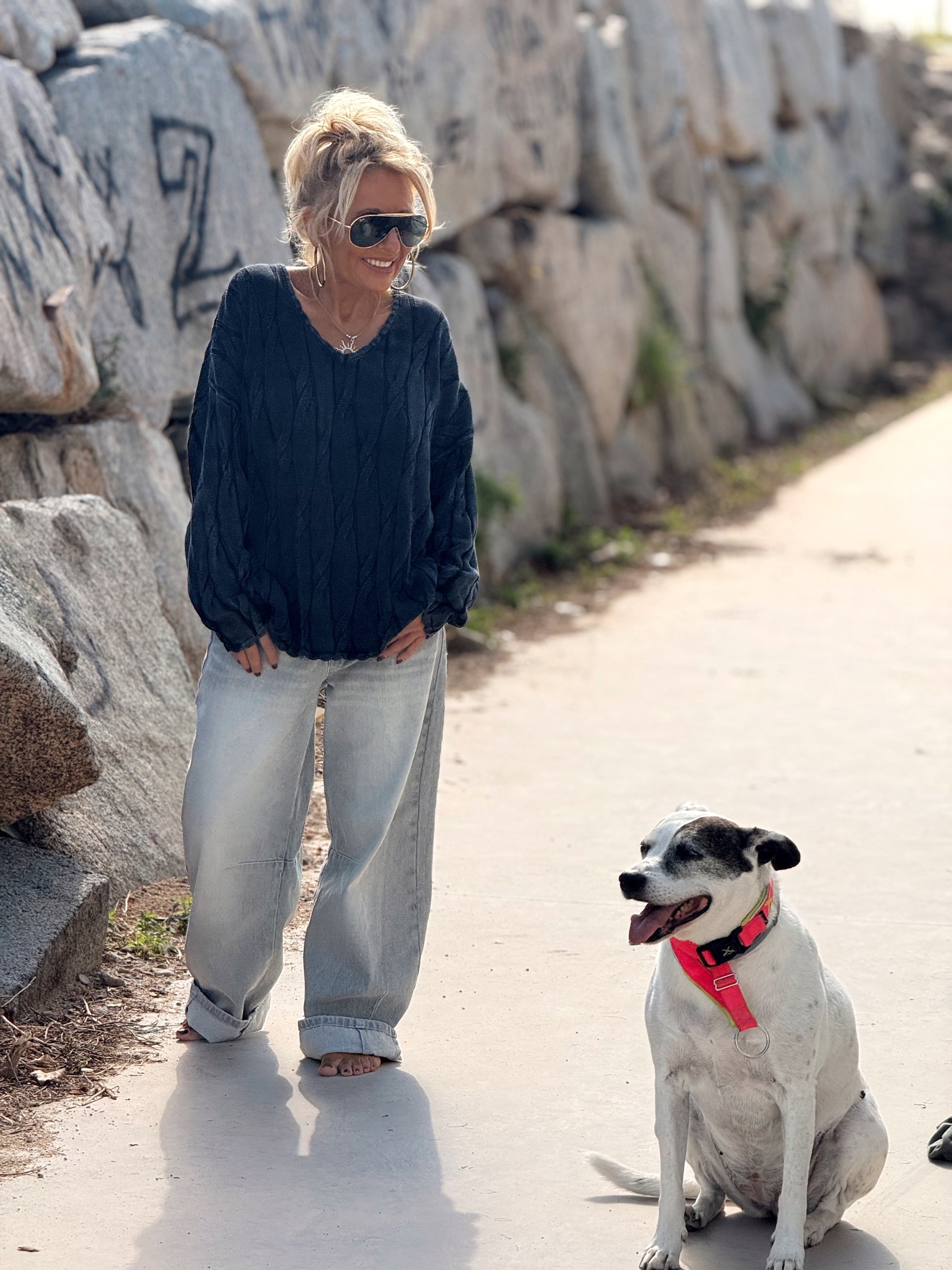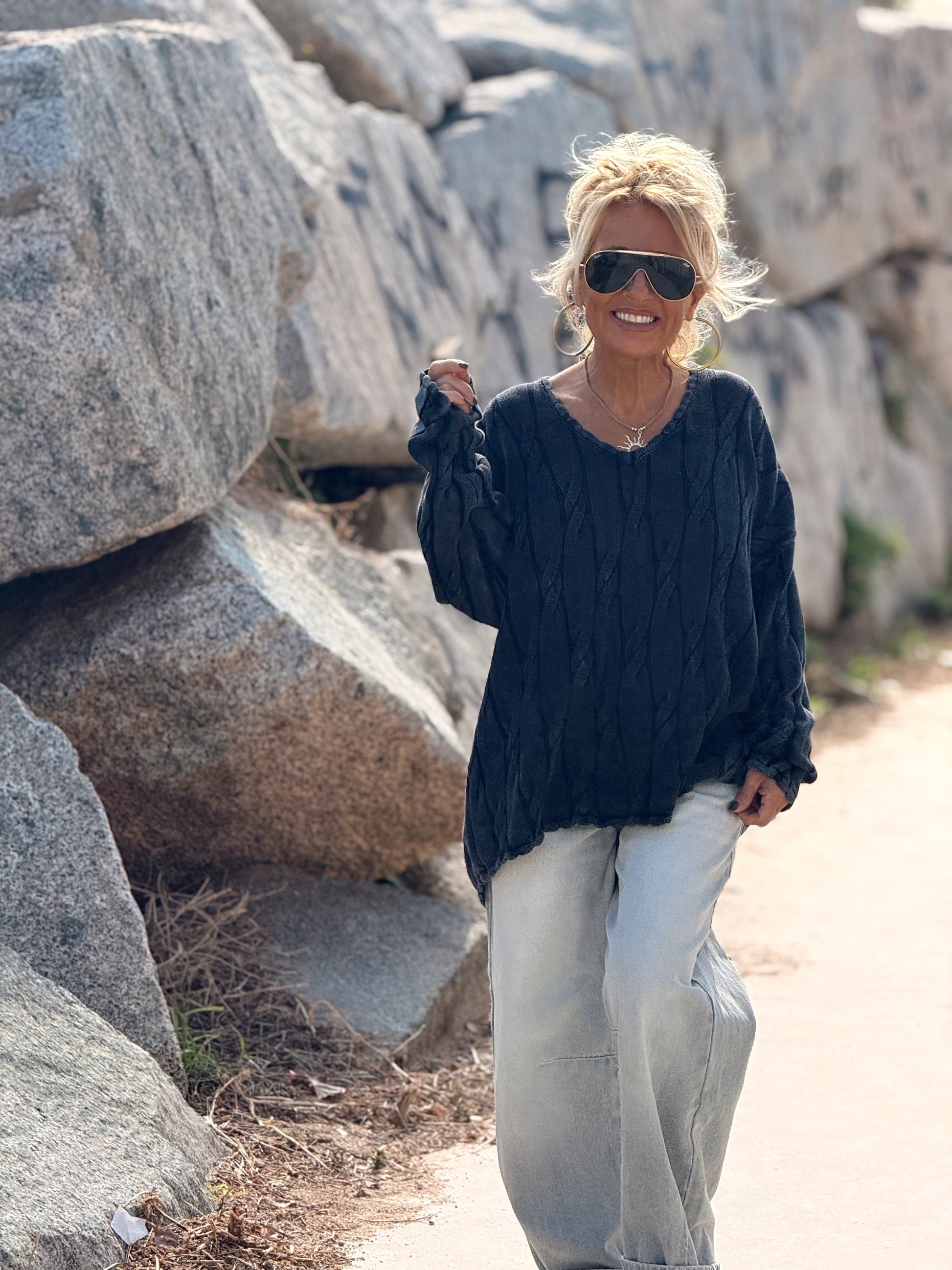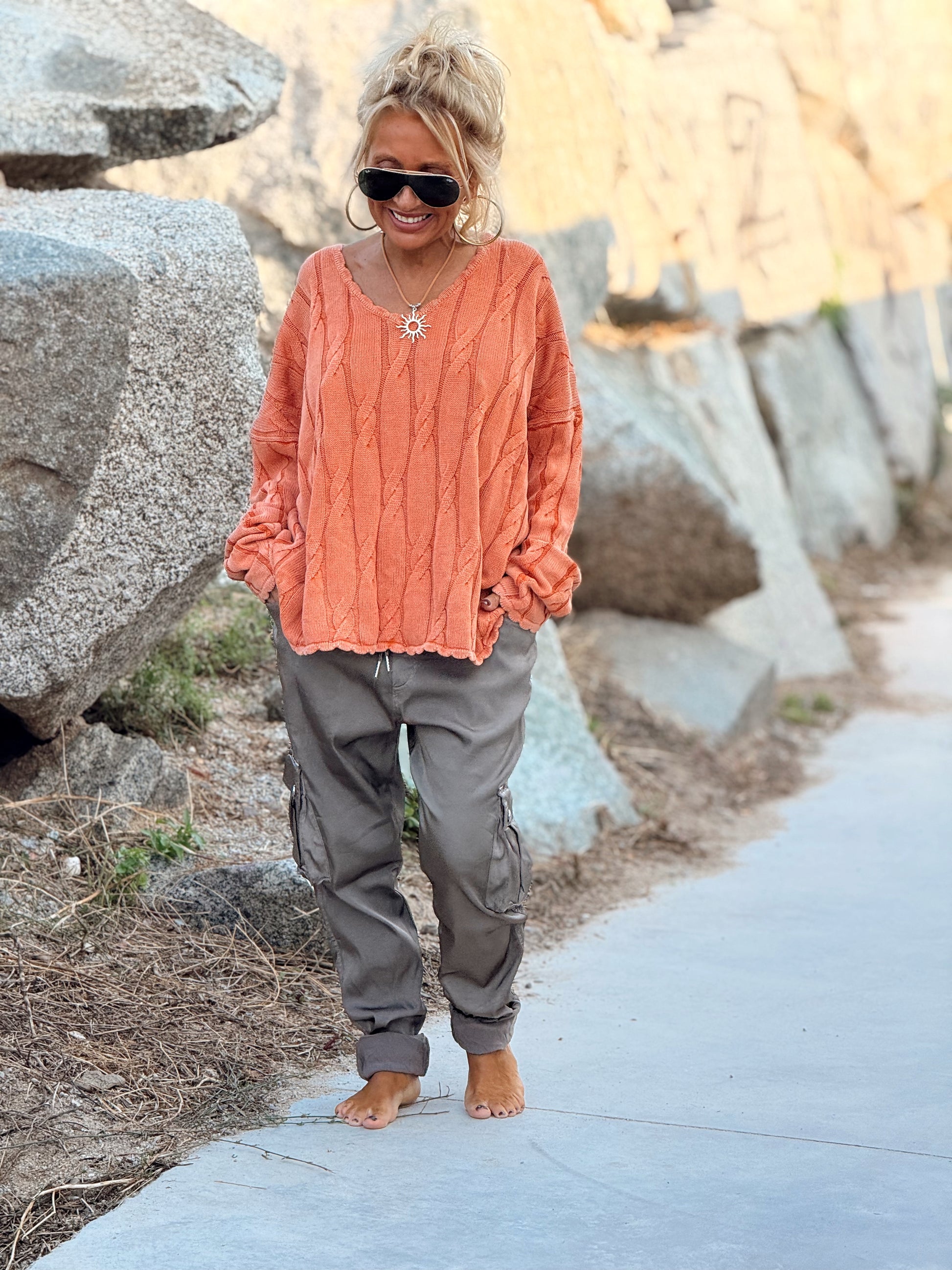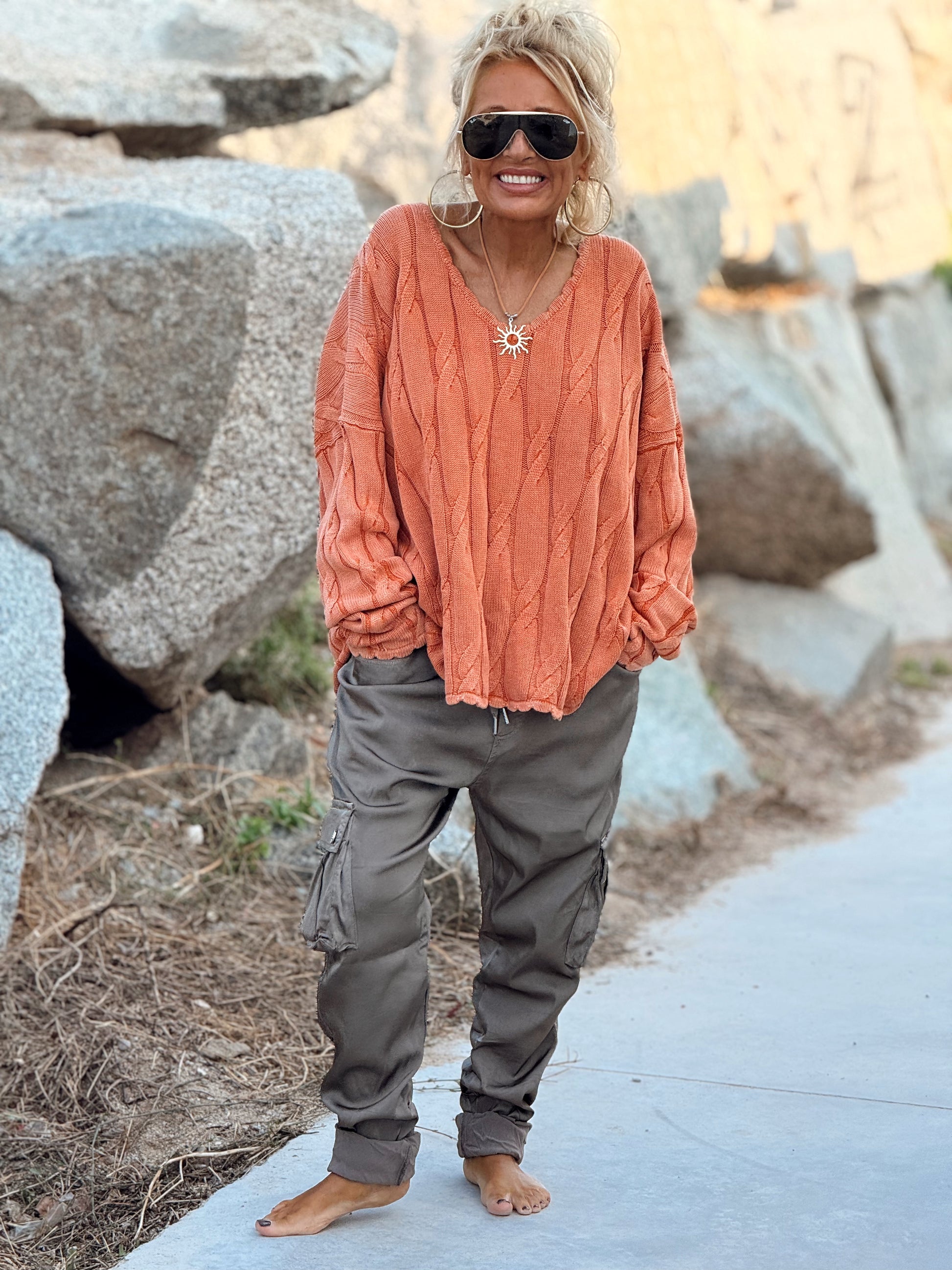 Un suéter trenzado con cuello en V, suave, cómodo y lleno de encanto. 🌸