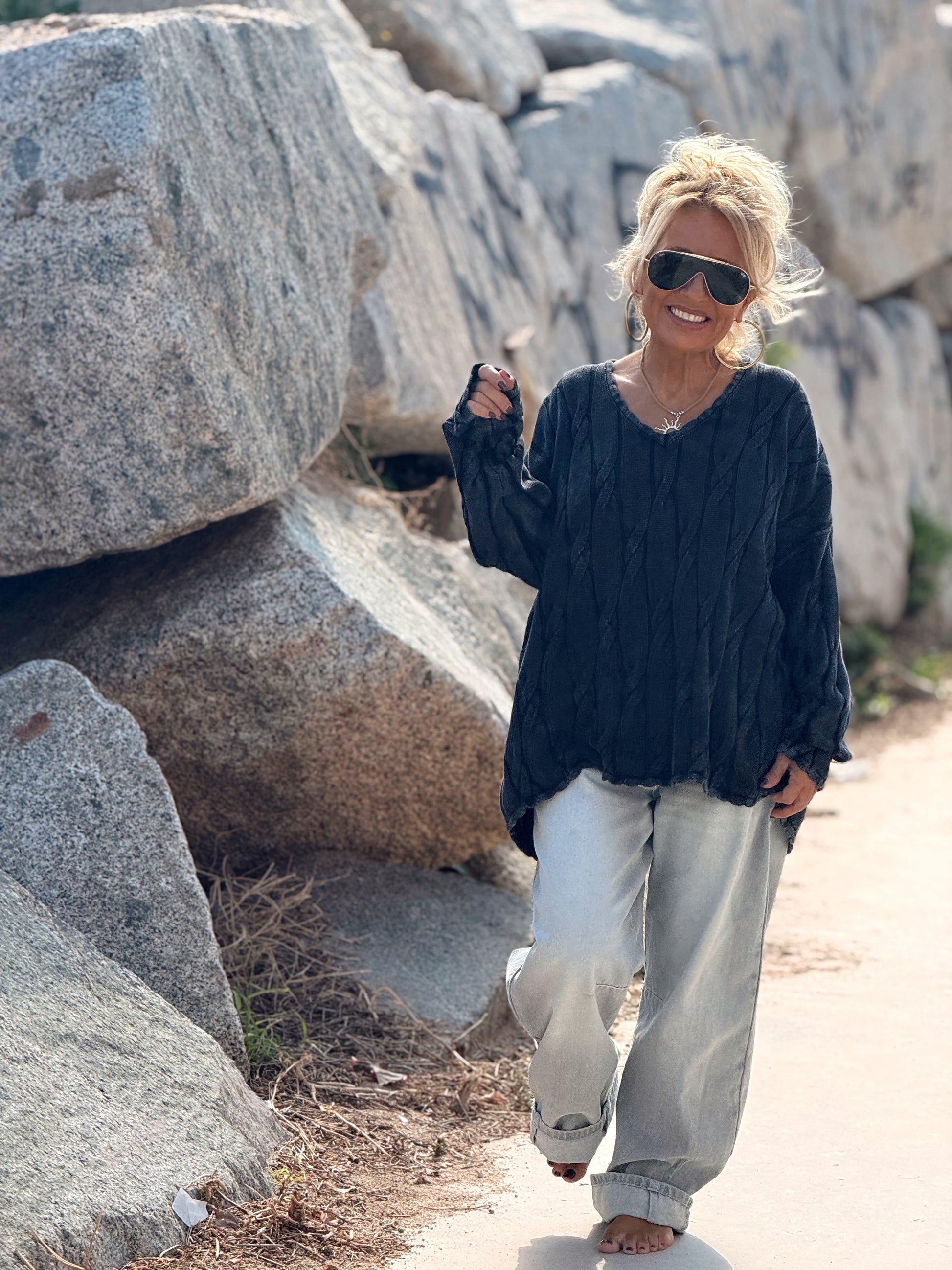 Su punto trabajado y su forma favorecedora lo convierten en la prenda ideal para crear looks relajados pero con estilo.