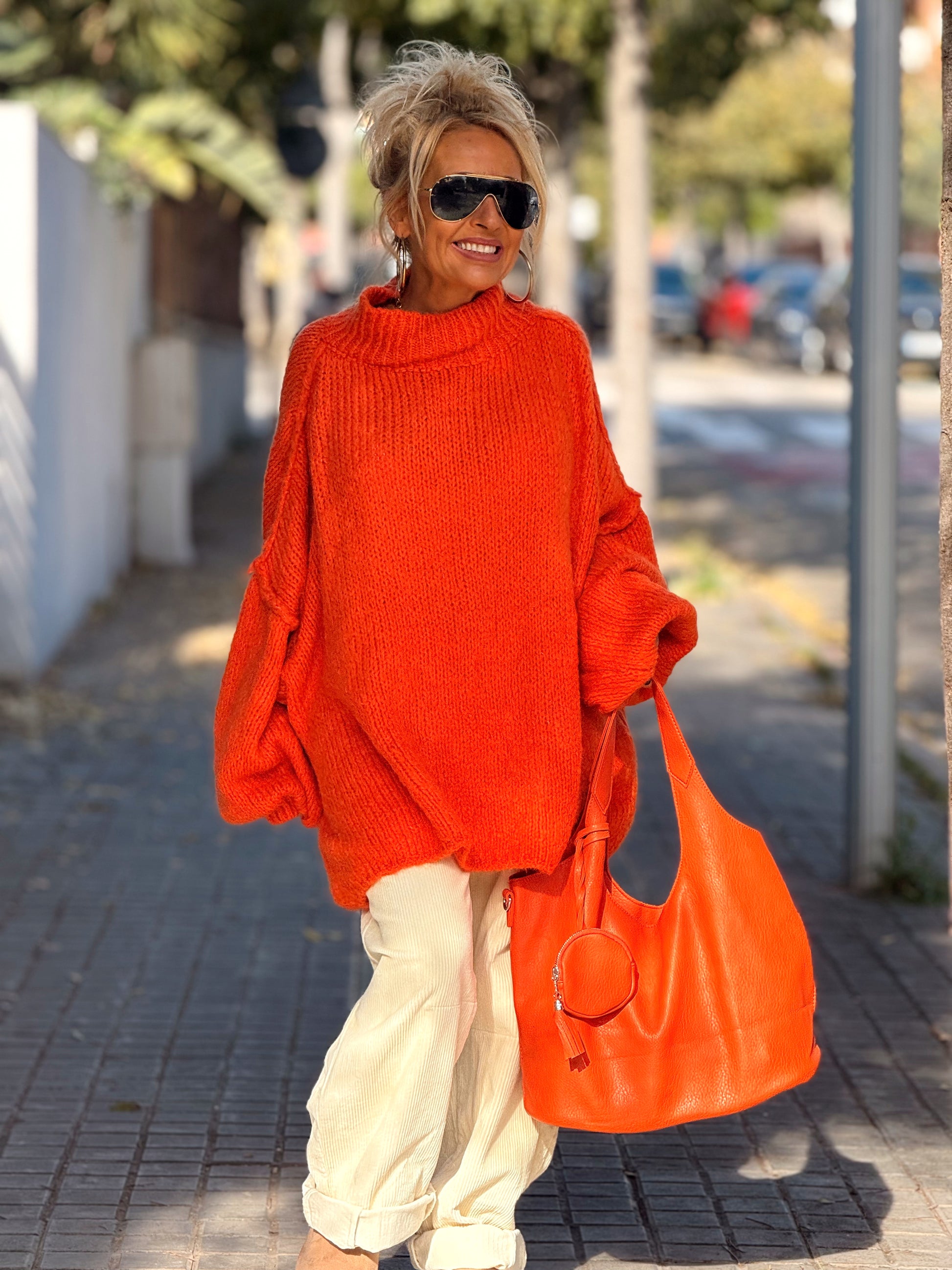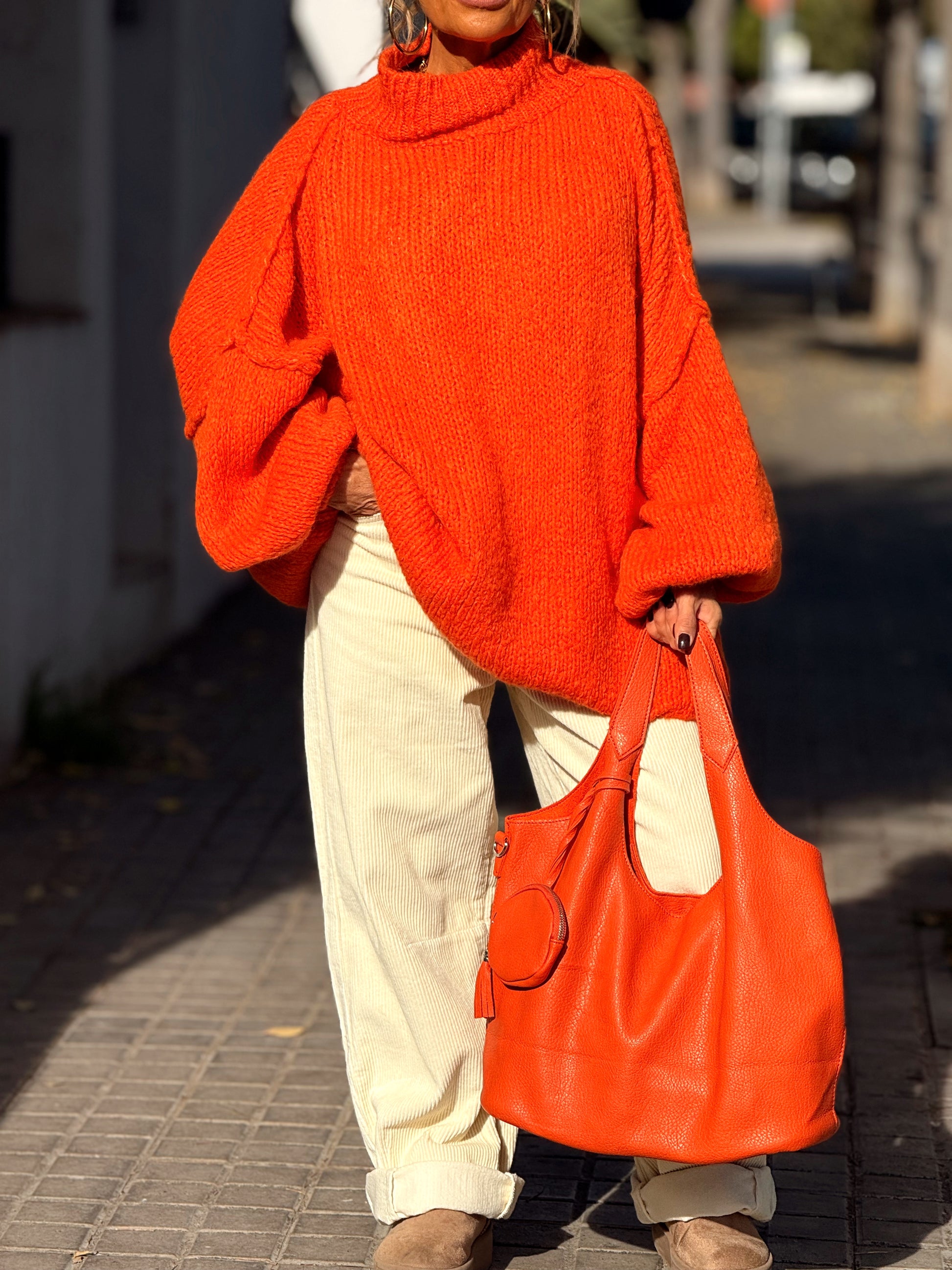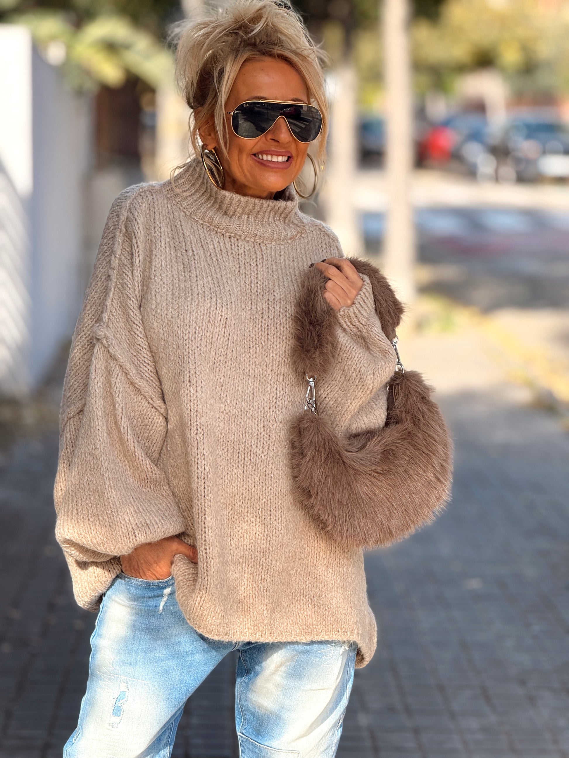 rsey largo y súper oversize, perfecto para los días fríos de invierno. Su cuello chimenea aporta ese toque cálido y acogedor que todas buscamos cuando baja la temperatura. Tiene una caída amplia y cómoda, y gracias a su diseño oversize se puede llevar perfectamente hasta una talla 44. Es ese jersey ideal que combina con todo y te acompaña durante toda la temporada con estilo y confort.✨