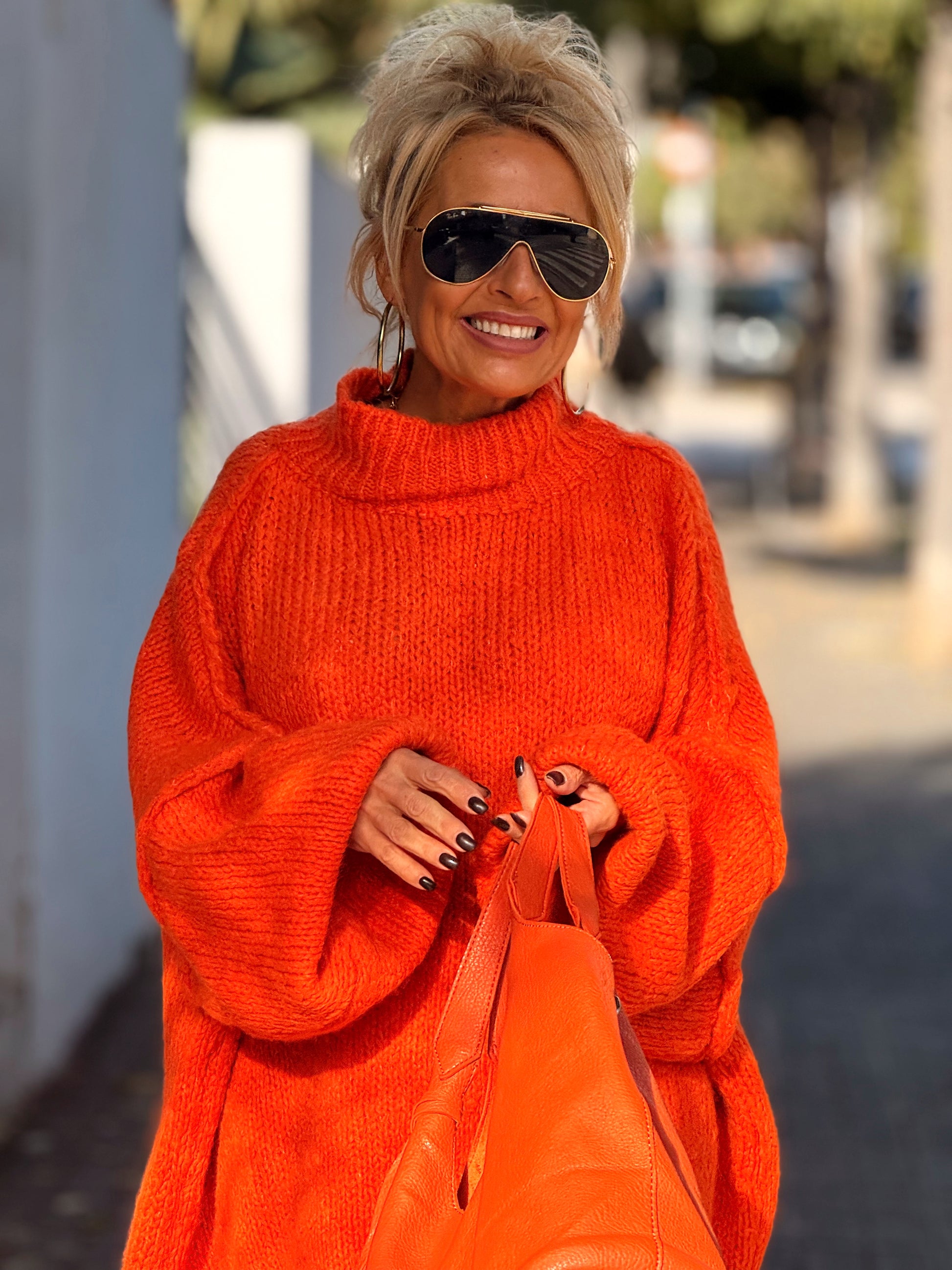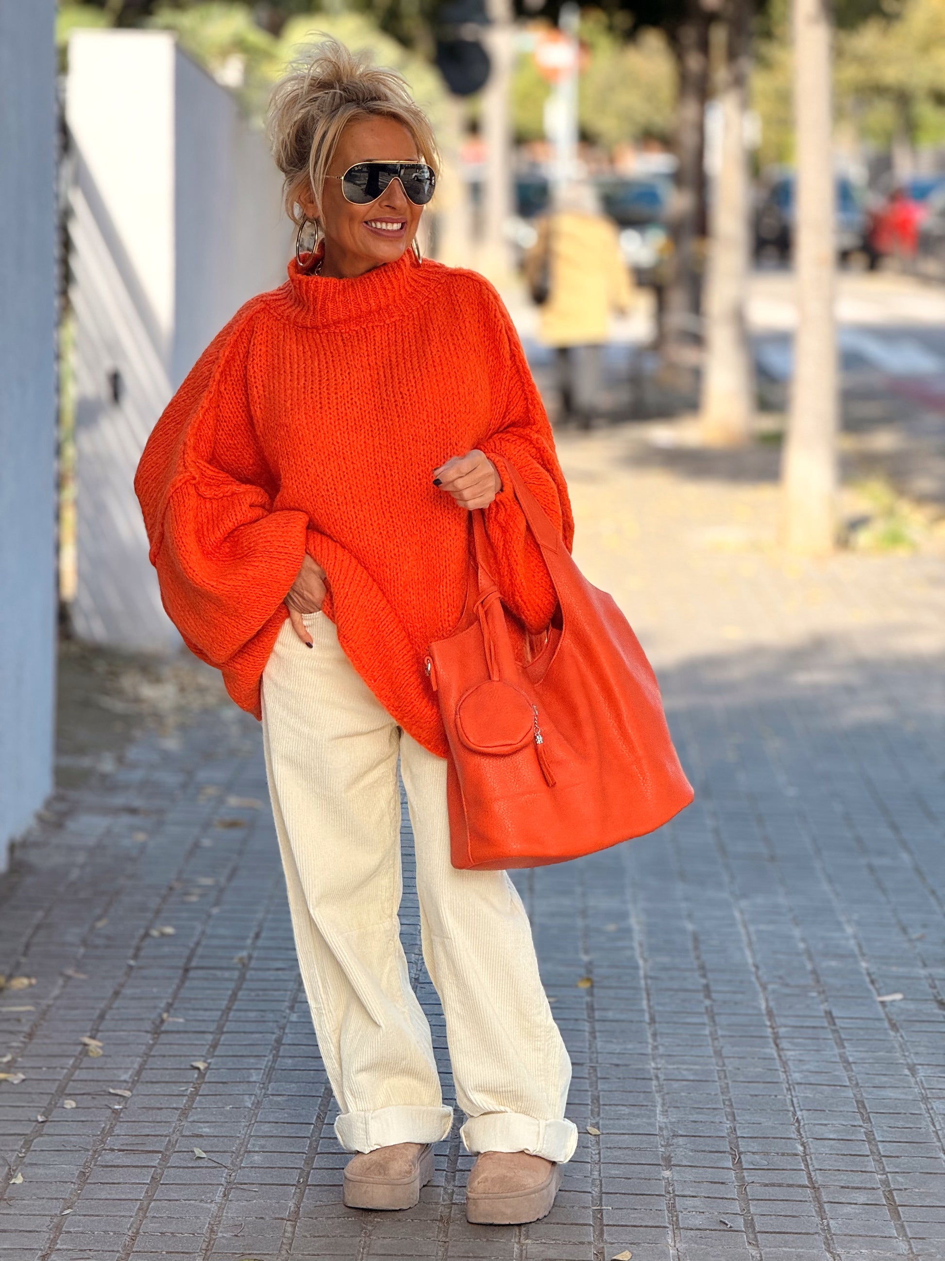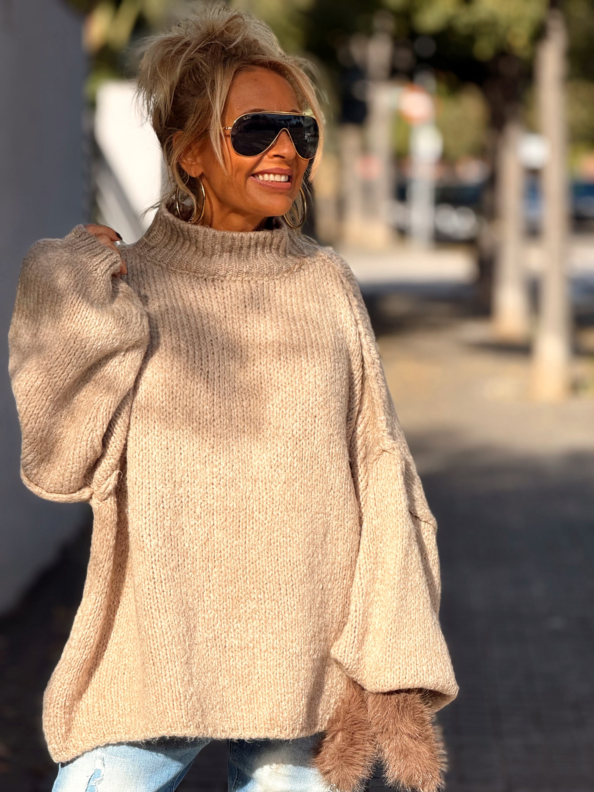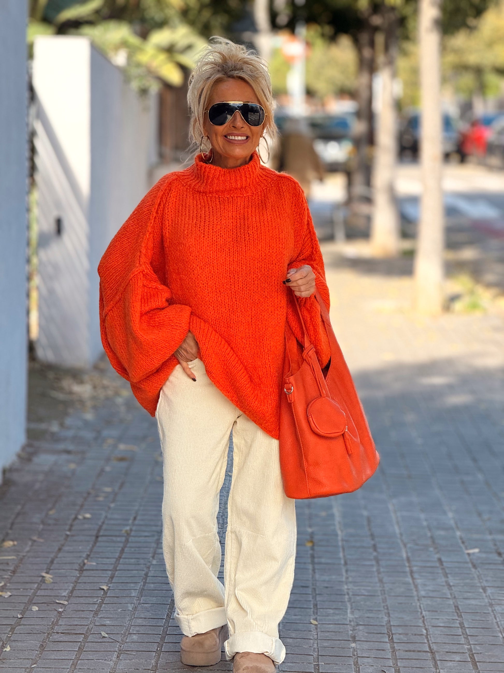 rsey largo y súper oversize, perfecto para los días fríos de invierno. Su cuello chimenea aporta ese toque cálido y acogedor que todas buscamos cuando baja la temperatura. Tiene una caída amplia y cómoda, y gracias a su diseño oversize se puede llevar perfectamente hasta una talla 44. Es ese jersey ideal que combina con todo y te acompaña durante toda la temporada con estilo y confort.✨