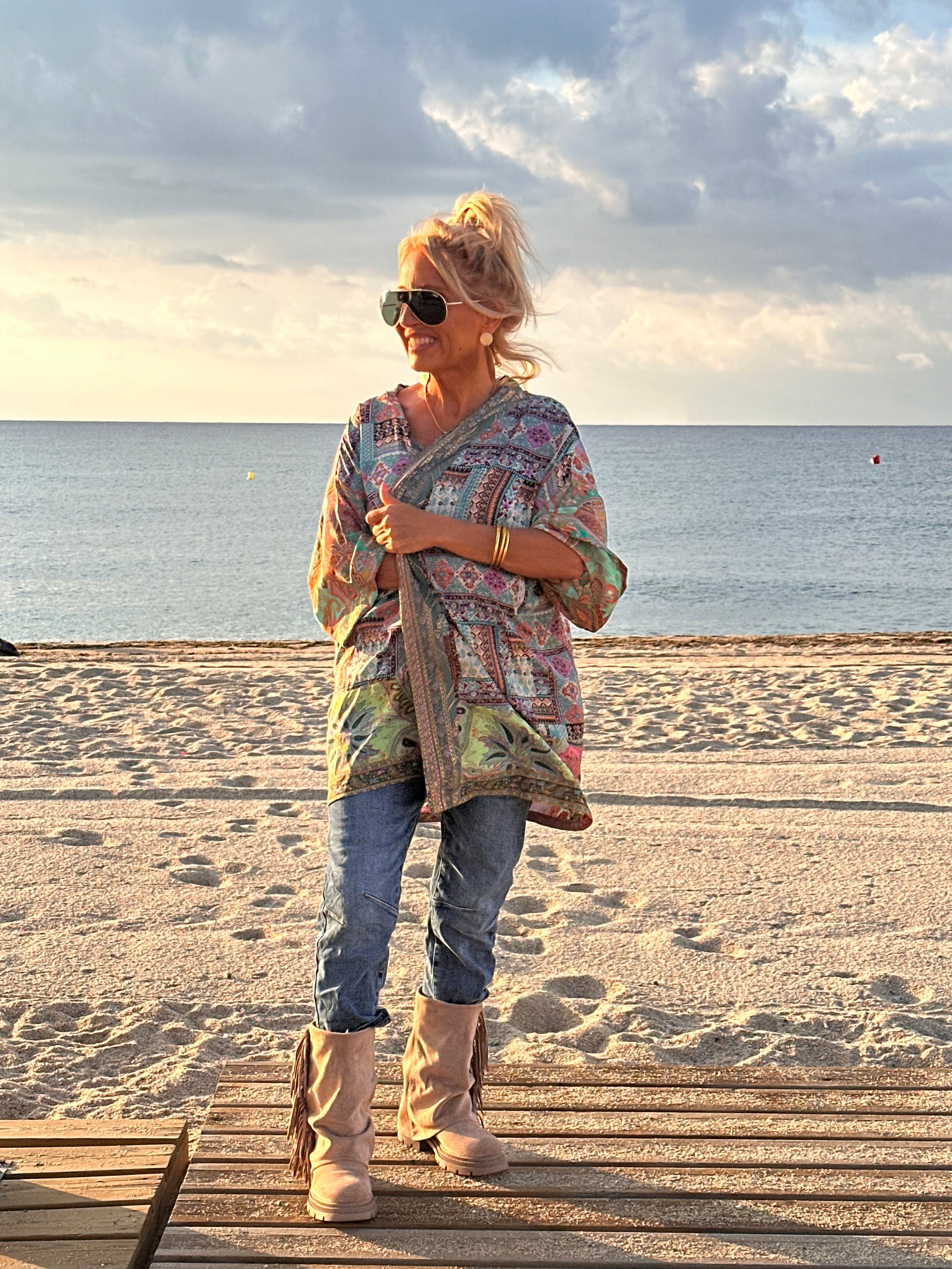 Este magnífico kimono, una pieza única y oversize que se adapta a todo tipo de cuerpo. Cada kimono es una verdadera obra maestra, confeccionada a mano con patchworks únicos. Las imperfecciones no son defecto, sino que añaden encanto y autenticidad a la tela. No existen 2 iguales. Añade un toque de originalidad y elegancia a tu armario con este kimono excepcional. FOTOS SIN FILTRO