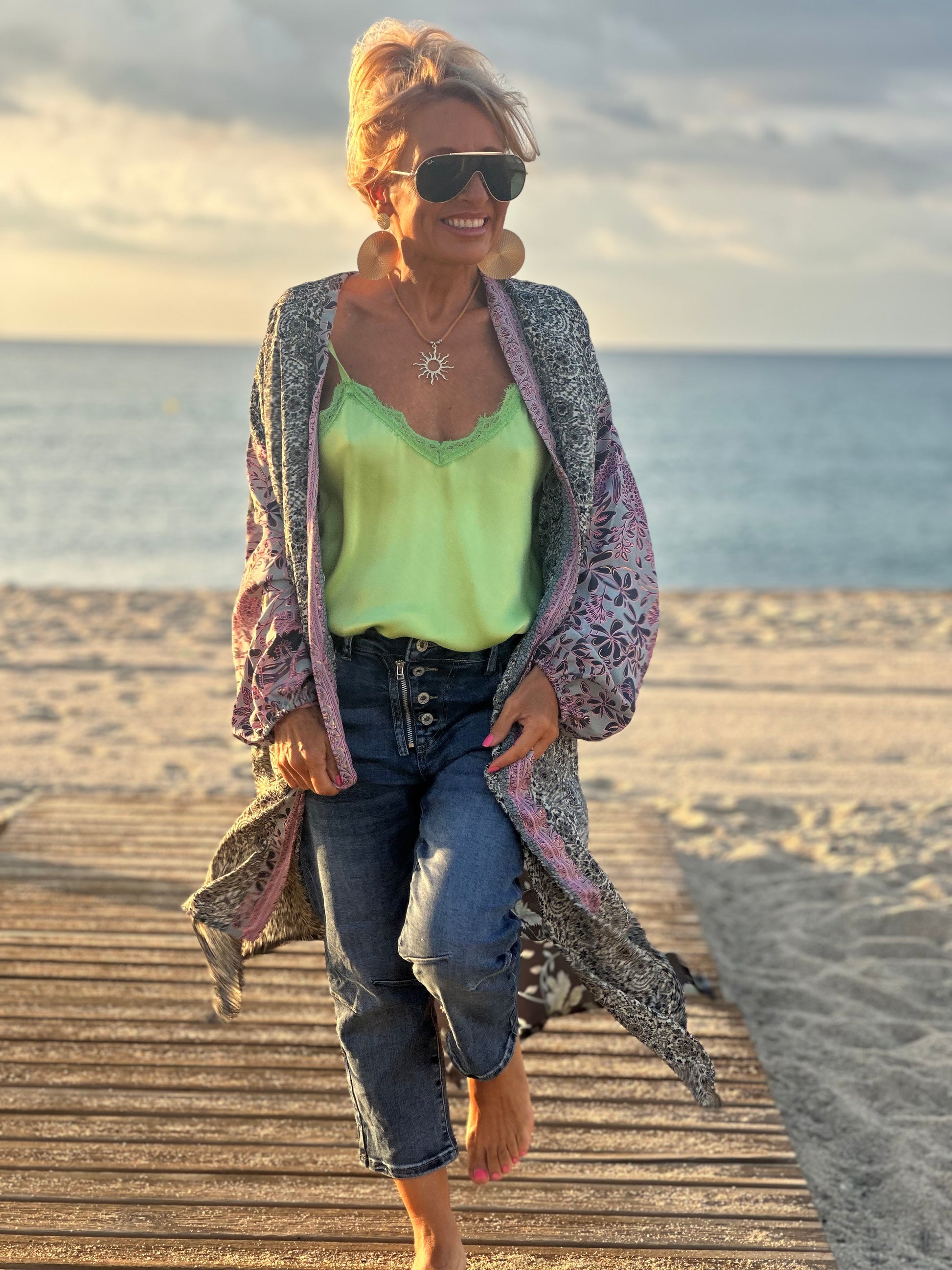 KIMONO ESTAMPADO MANGA ELÁSTICO MULTICOLOR