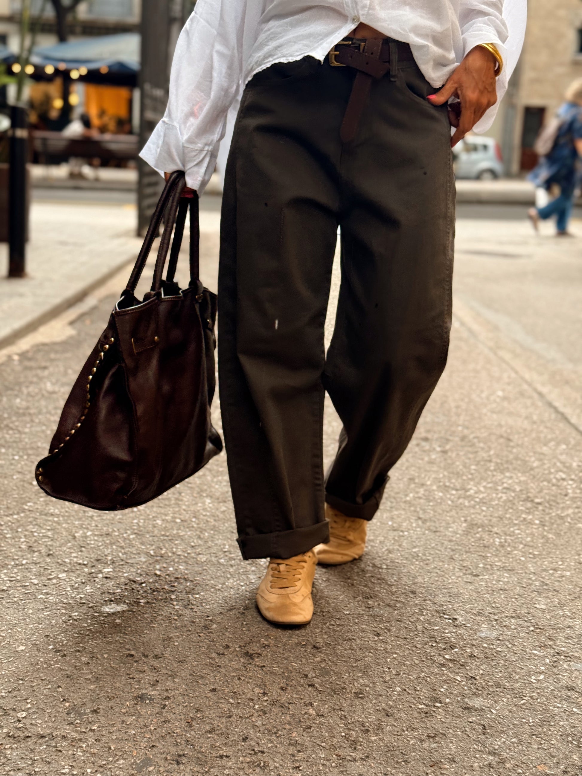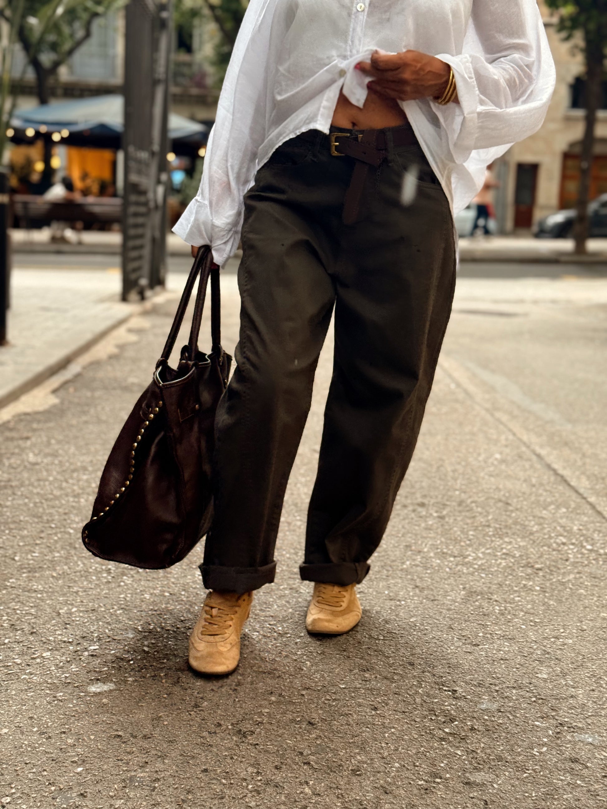 Un pantalón espectacular con su cinturón a juego: simplemente magnífico en cada detalle.