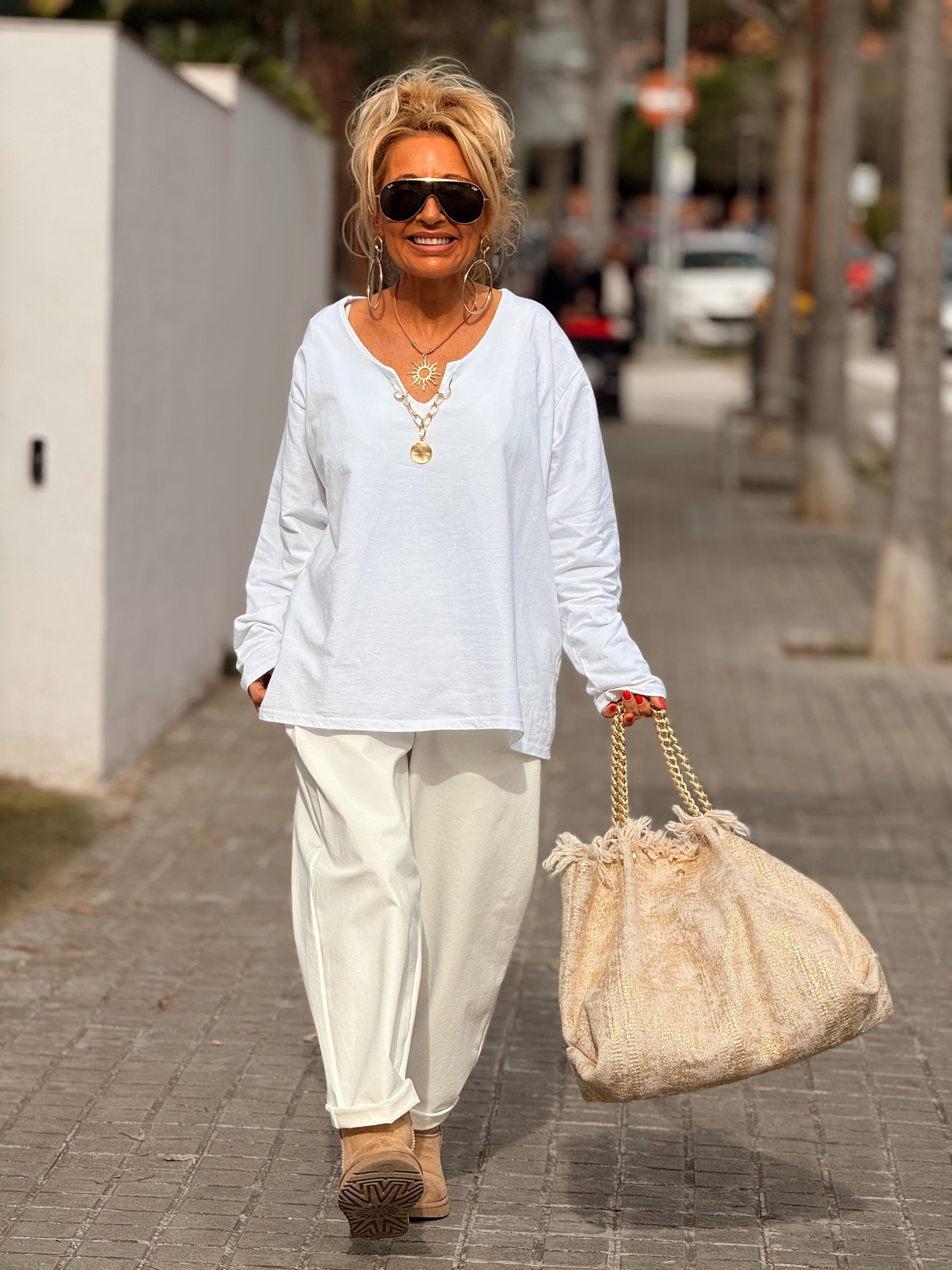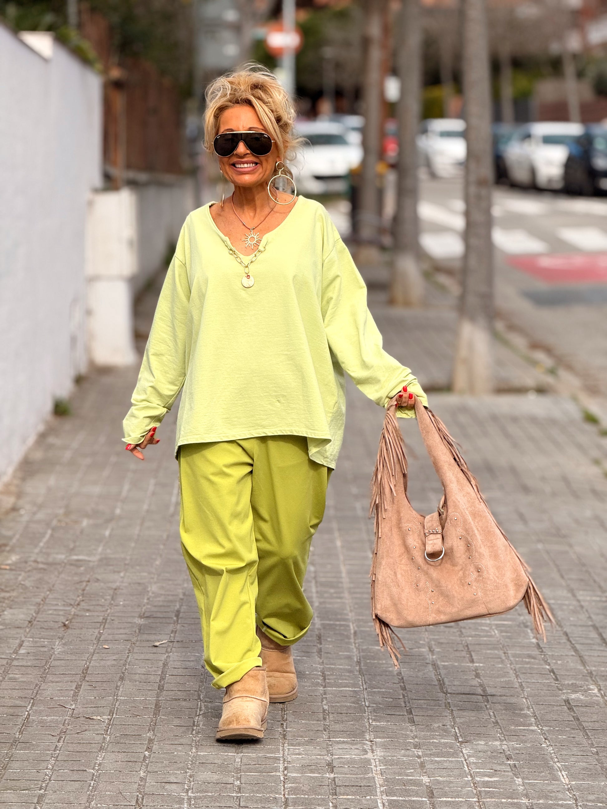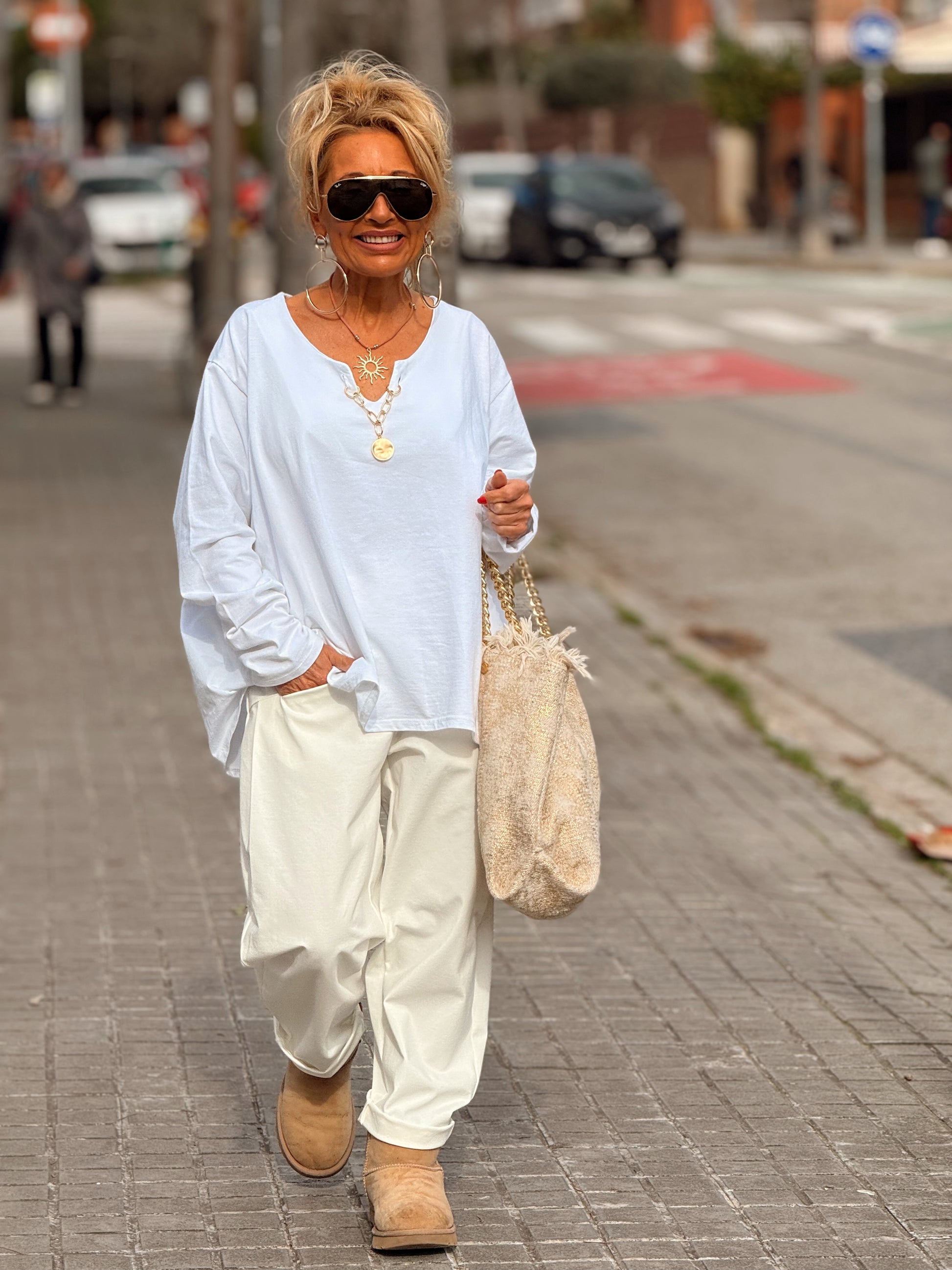 Un diseño pensado para sentirte cómoda sin renunciar al estilo. Tiene una caída impecable que estiliza la silueta y un tejido con elasticidad perfecta, que se adapta al cuerpo sin apretar.