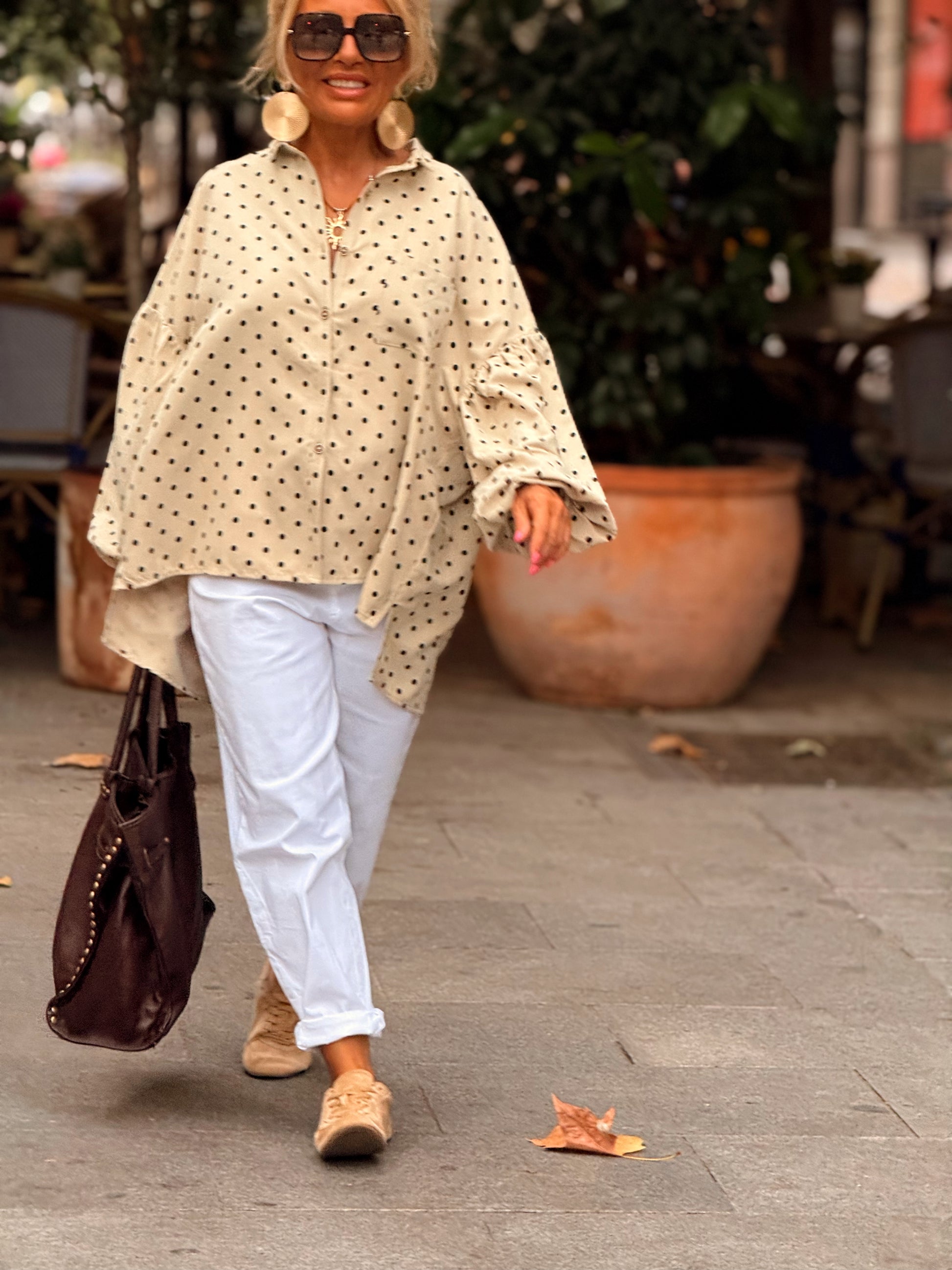 Un pantalón espectacular, con un corte ligeramente abombado y muy cómodo de llevar. Perfecto para el otoño, es de esas piezas imprescindibles que no pueden faltar en tu armario. Versátil y elegante, lo puedes usar para ir a trabajar, en el fin de semana o en cualquier ocasión: combina con todo y siempre queda bien.