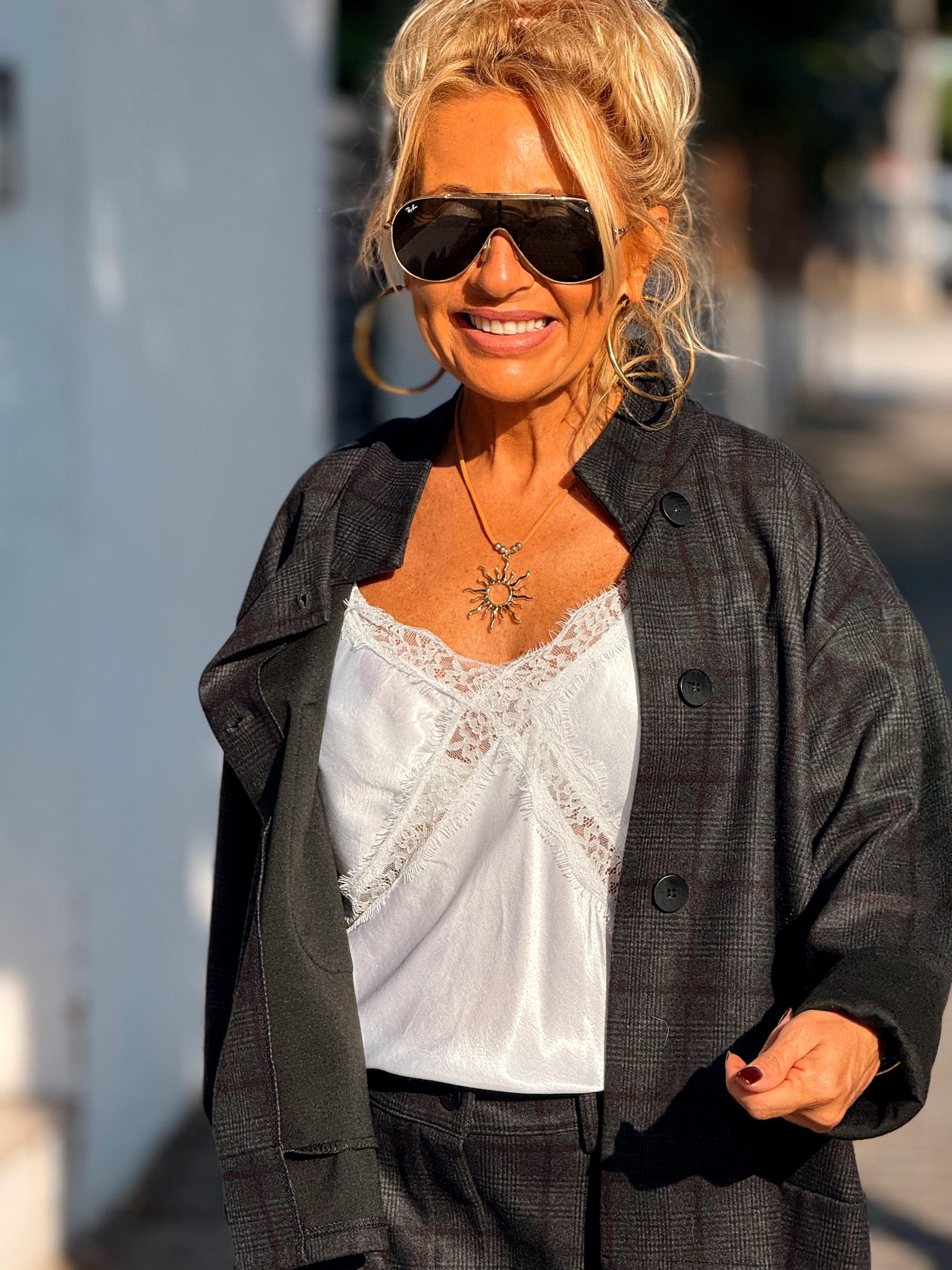Top de encaje precioso y súper femenino. Su diseño delicado y su tejido suave lo hacen ideal para cualquier ocasión.